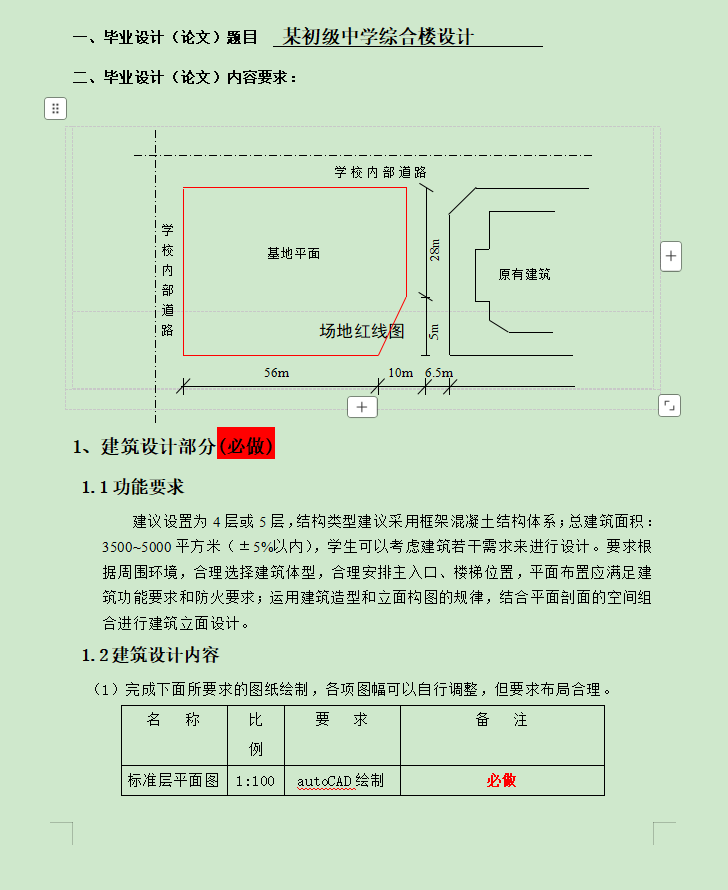 | 项目名称 | 中学综合楼设计毕设 | 项目类型 | 土木毕业设计 |