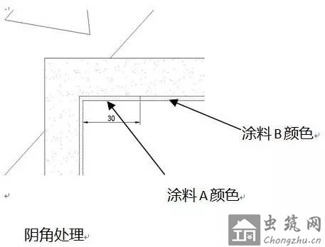 图4 外墙涂料阴角部位采用延伸的方法节点图